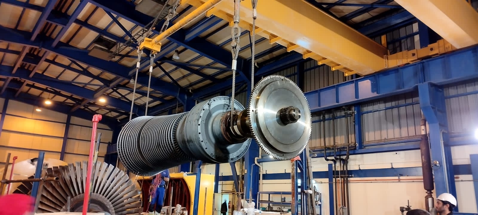 Disassembly of rotor‐generator train including removal of rotor, blade carriers, and diaphragms. Inspection, welding or repair of shafts (bearing journals, coupling fits) and disc surfaces. Straightening bent rotors, balancing (low and high speed) post‐repair.